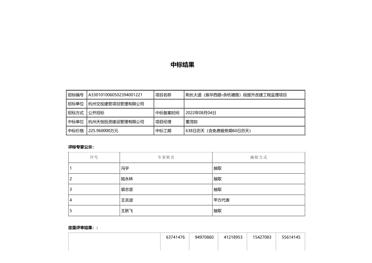 荊長大道(振華西路-余杭塘路)段提升改建工程監理項目中標結果