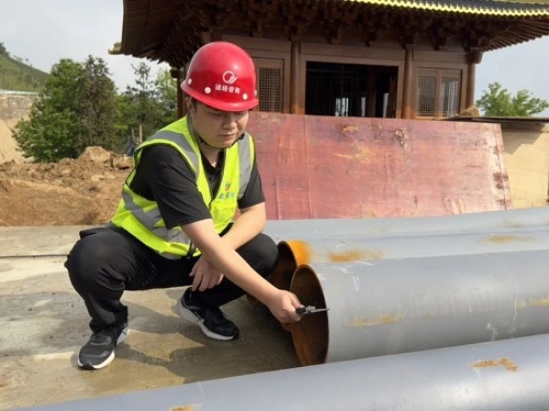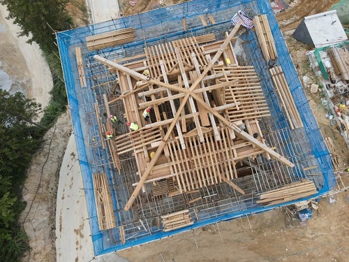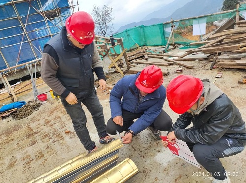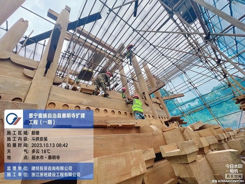 在諸如鐘鼓樓屋面防水等關鍵工序驗收上,建經公司全咨部亦表現出敏捷高效的響應能力和堅韌不拔的質量追求。以鐘鼓樓屋面防水為例,通過對鐘鼓樓進行24小時屋面防水淋水試驗,協同總承包商及各分包商現場聯合驗收,確保工序無縫連接。針對山地施工現場濕度大的特點,全咨部密切關注木結構含水率,邀請專業油漆廠商現場指導,雙管齊下確保木結構實物質量和外觀美感均達一流水準。此外,在鐘樓鐘架鋼材驗收環節,我司監理人員憑借敏銳的專業洞察力,發現問題鋼材后迅速作出退場決定,堅決消除了鐘架質量風險,彰顯了建經公司對工程質量零容忍的鐵腕決心。