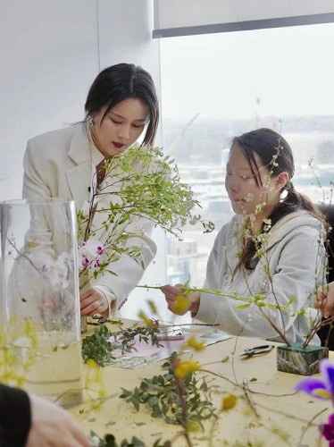 三月芳華,春暖花開萬物蘇。“成為什么,由她決定”是所有女性追求的理想自由狀態。倡導“她力量”,希望女性對世界的貢獻,特別是那些沒有被看到的“無償”勞動能被看見、被承認;“她力量”的榜樣還意味著“多樣性”和“可能性”,向世界呈現更多創新理念與多元化思維,像一棵棵大樹,向天空舒展出更多的“枝椏”。會上,建經公司也為全體婦女同胞帶來了一場致敬“她力量”的主題活動——“愛·純粹”草月與冥想。特邀嘉賓草月流花道家為大家分享流派故事、植物感知力、治愈力的方法論及經典空間花藝,展示草月流插花藝術并組織所有婦女同胞們動手設計制作屬于自己的插花作品,通過嘗試與身邊人的單向聆聽與傾訴來為對方選出眼中最適合的主花,從而在各自插花作品中增添友誼的色彩。